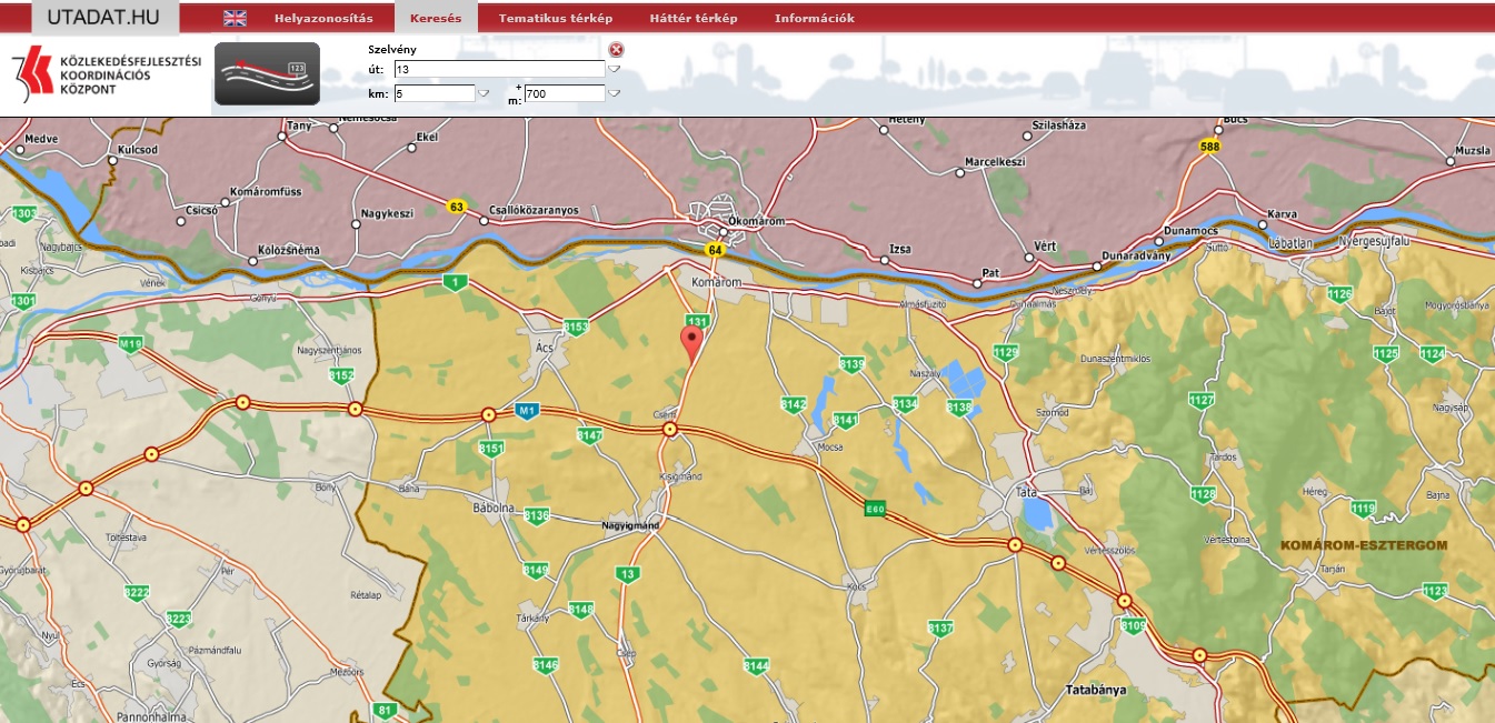 Komáromban 2014. december 15-én 7 órától 16 óráig a 13. számú főúton, az 5+700. kilométerszelvény és a 7+700 kilométerszelvény között,