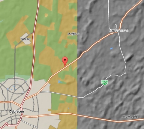 - 4-es számú főúton a 236-es és 238-as kilométerszelvények között Bocskaikert irányából Debrecen felé