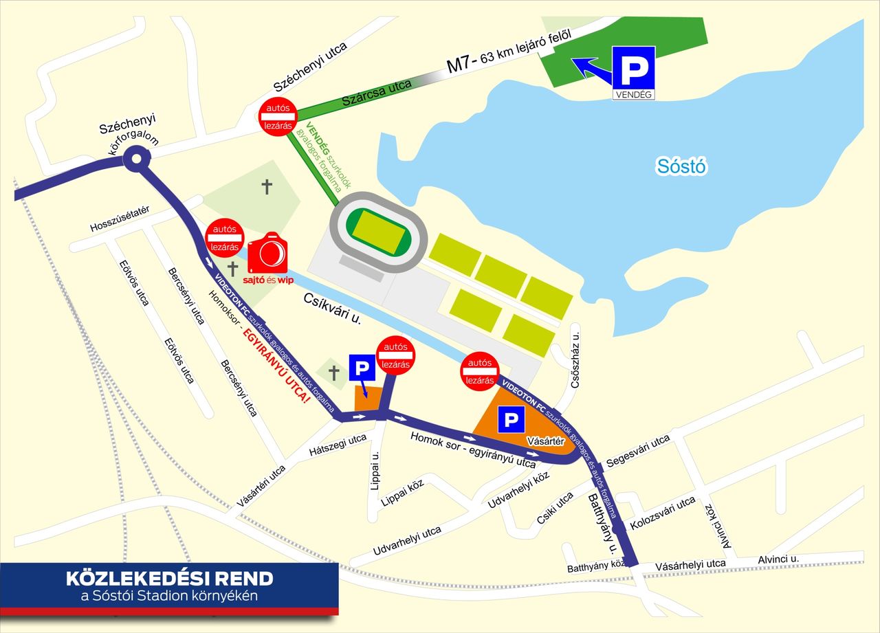 A Videoton szurkolói a stadion környéki parkolókat (Homoksor, Vásártér) vehetik igénybe járműveikkel.