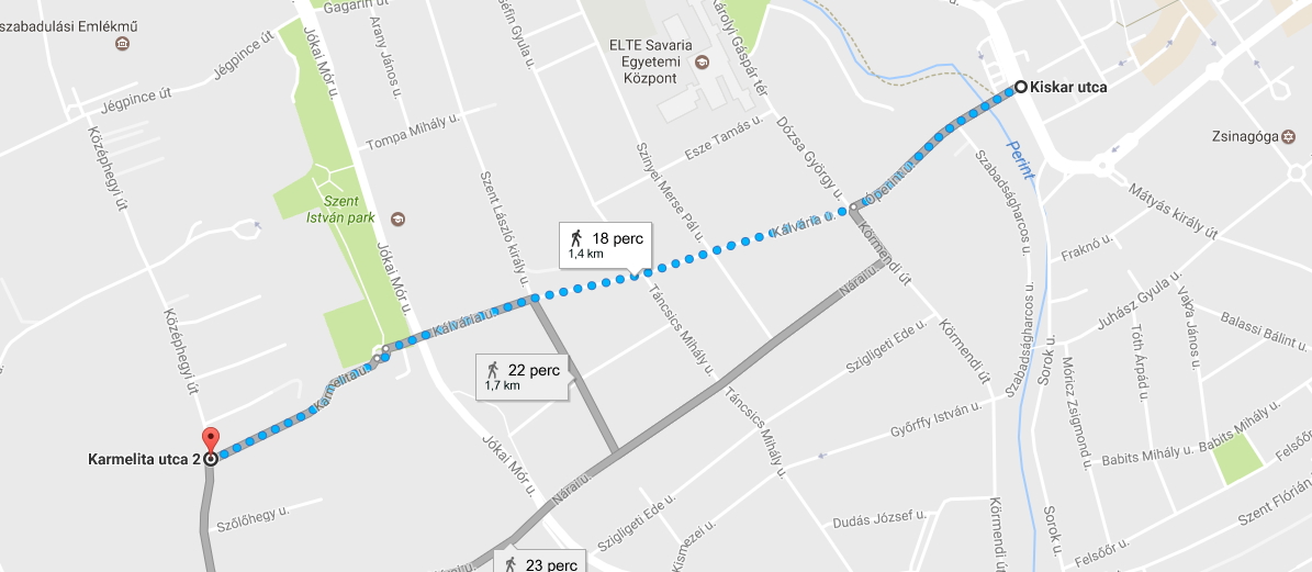 az Óperint utca – Kálvária utca – Karmelita utca.