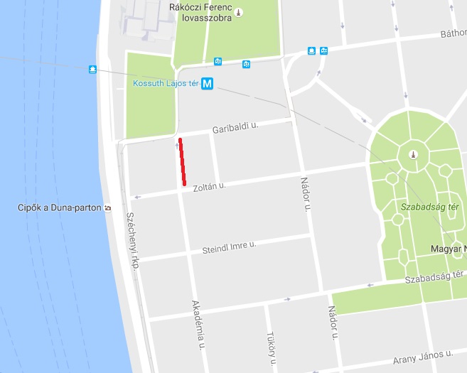 Akadémia utca páratlan oldalán a Zoltán utca és a Garibaldi utca között.