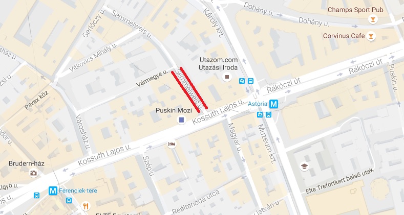 2016. december 1-jén 2 óráig a Budapest V.,