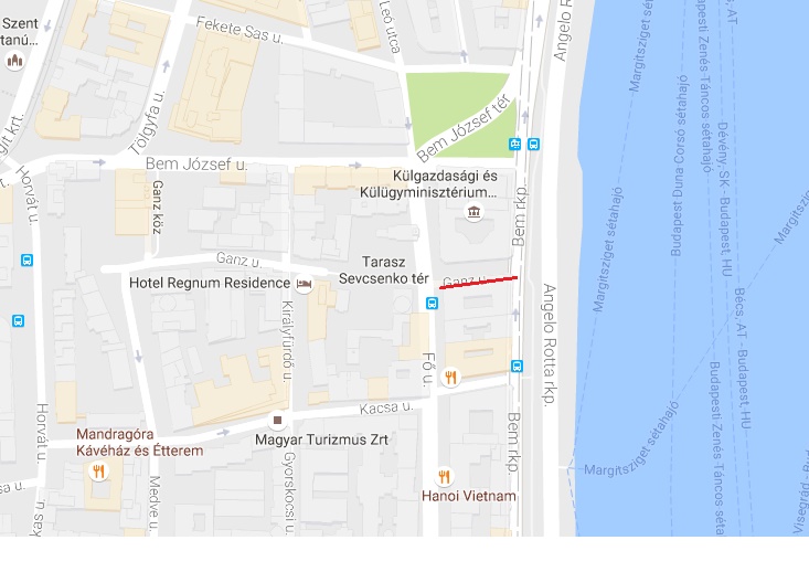 Ganz utca mindkét oldalán a Fő utca és a Bem rakpart között.