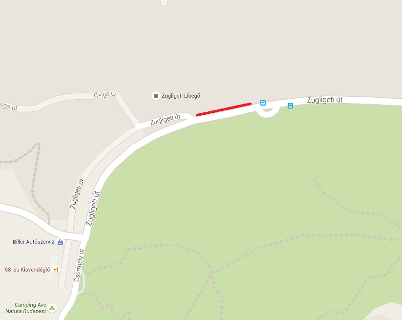 Zugligeti út 93. szám előtt lévő parkoló teljes területén.