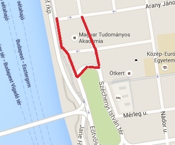 Akadémiai utca Magyar Tudományos Akadémia felőli oldalán a Széchenyi tér és az Arany János utca között,