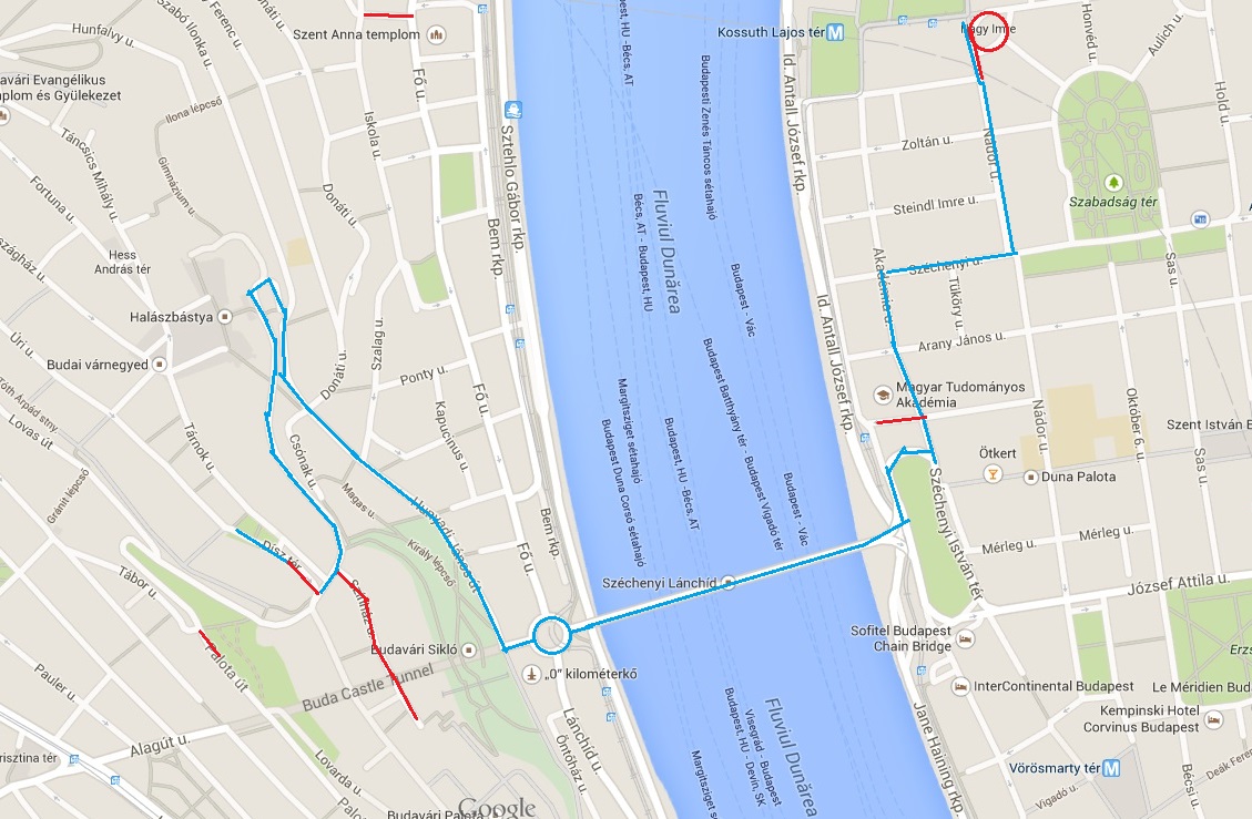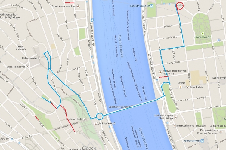 Nádor utca - Széchenyi utca - Akadémia utca - Széchenyi István tér - Széchenyi Lánchíd - Clark Ádám tér – Hunyadi János út - Dísz tér útvonal.