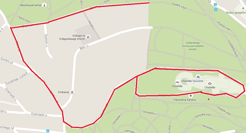 Szirtes út a Citadella felé (a Sánc utca – Szirtes út kereszteződésétől),