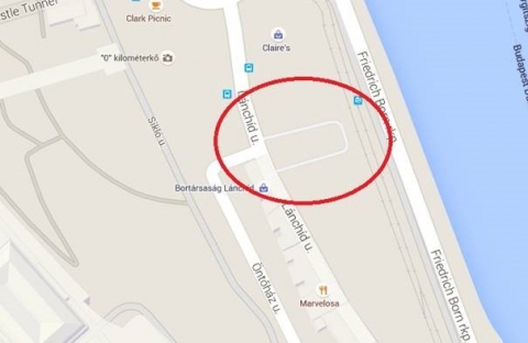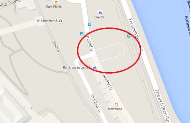 Lánchíd utcai „U” alakú nagy parkoló területén.