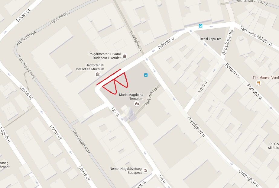 Kapisztrán tér HM Hadtörténeti Intézet és Múzeum előtti területen, valamint a vele szemben lévő két „U” alakú parkoló területén.