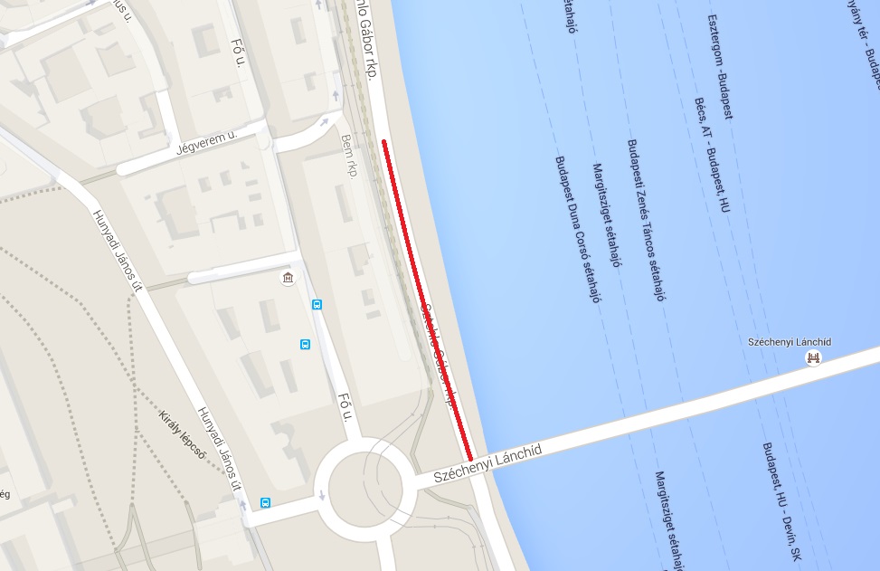 Sztehlo Gábor rakpart a Széchenyi Lánchíd és a Bem rakpart 3. szám között.