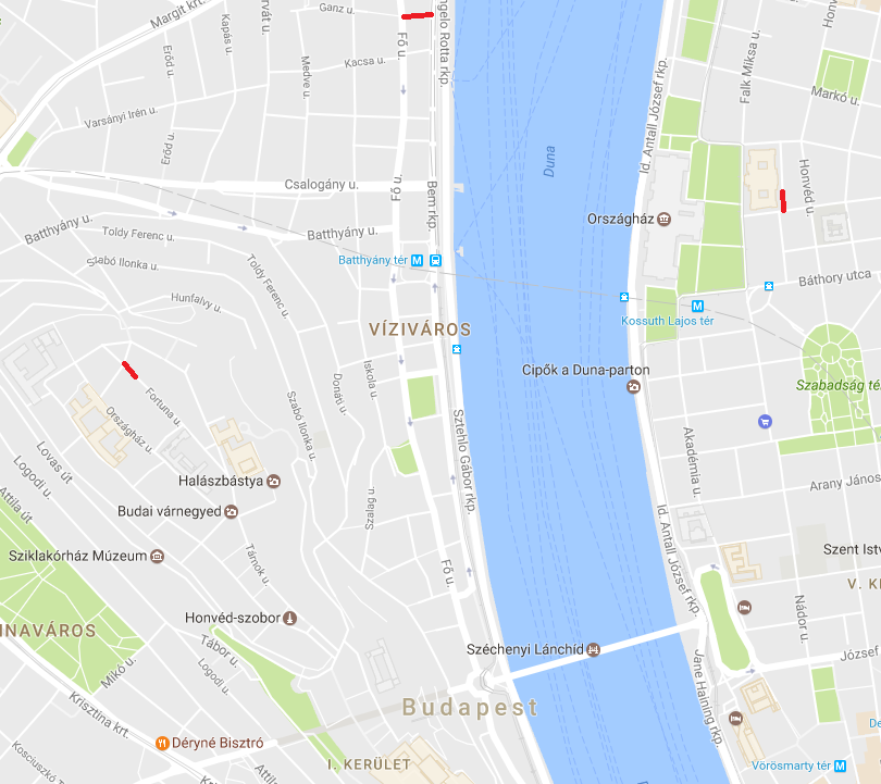 Apáczai Csere János utca páros oldalán a Hotel InterContinental előtt,