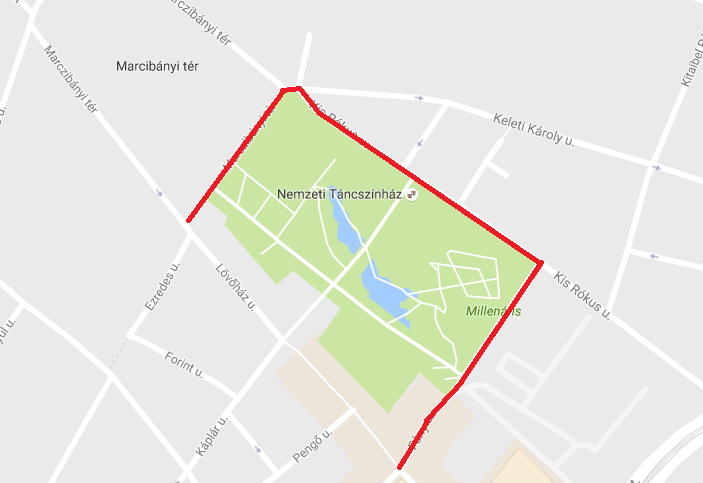 Marczibányi téren mindkét oldalán a Lövőház utca és a Kis Rókus utca között,