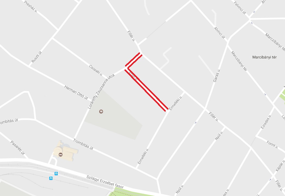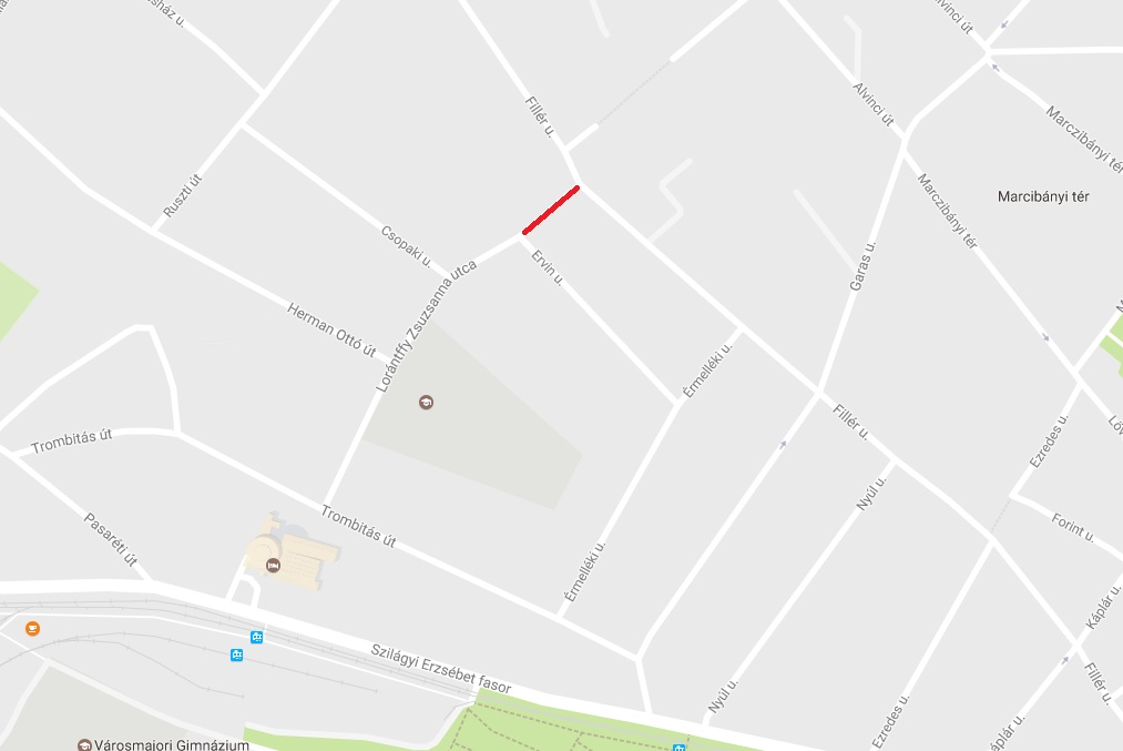 Lorántffy Zsuzsanna utca Fillér utca és az Ervin utca közötti szakaszán.