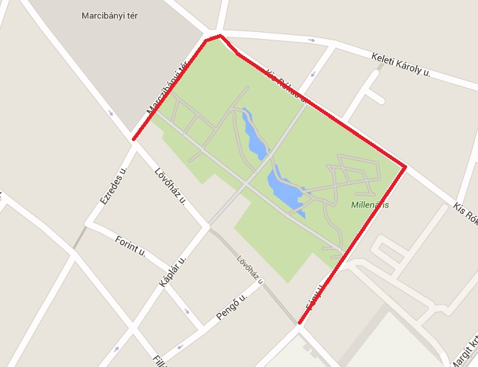 Marczibányi téren a Lövőház utca és a Kis Rókus utca között (mindkét oldalon),
