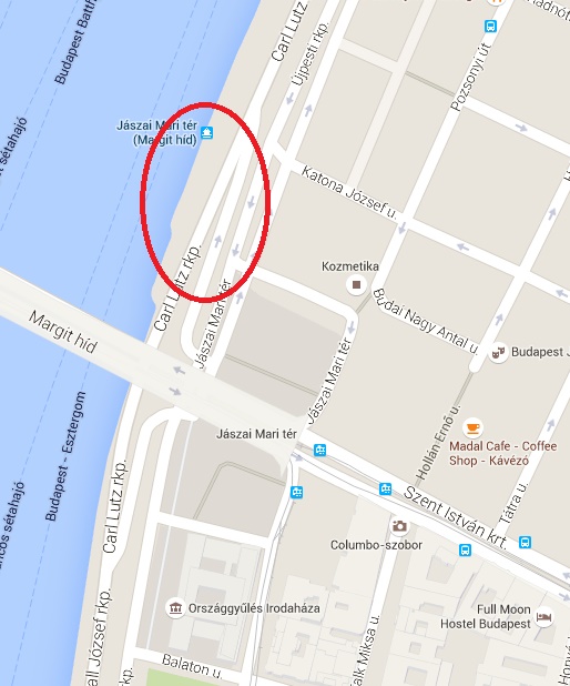 Jászai Mari tér 9. szám, hajóállomás előtt 8 személygépkocsi helyen.
