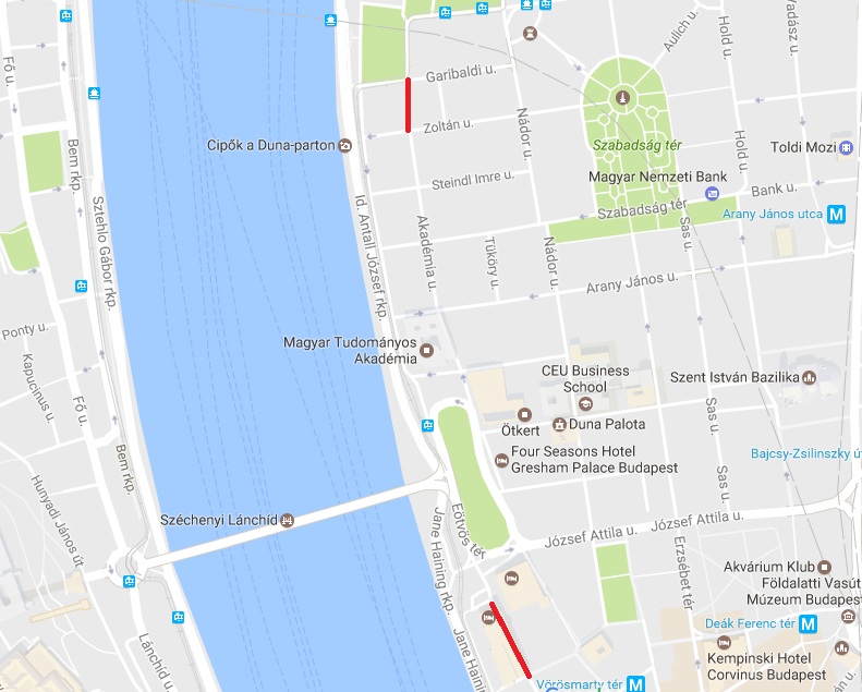 Akadémia utca páratlan oldalán a Zoltán utca és a Garibaldi utca között,