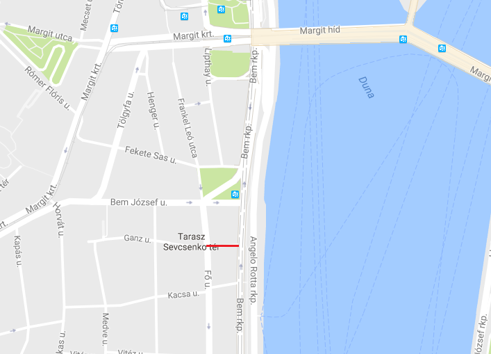 Ganz utca páros oldalán a Fő utca és a Bem felső rakpart között.