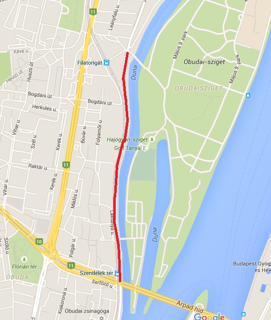 sziget (Mozaik utcai csomópont) és a Margit híd között.