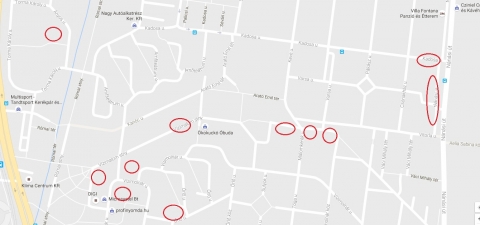 Őrlő utca 8. számmal szemközti parkoló területén, (30 méteres szakaszon).