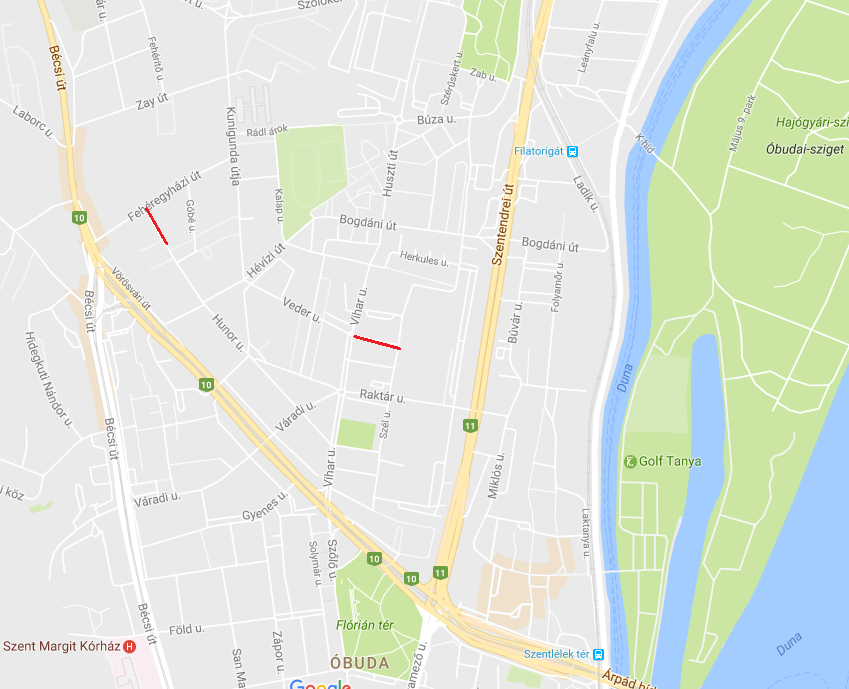 Petúr utca mindkét oldalán a 11-13/B szám közötti területen.