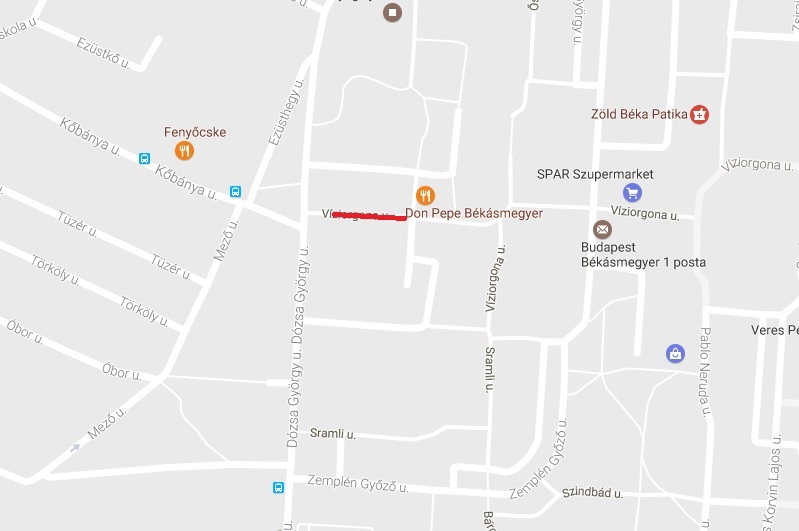 Víziorgona utca 12. szám előtt 50 méter hosszan,