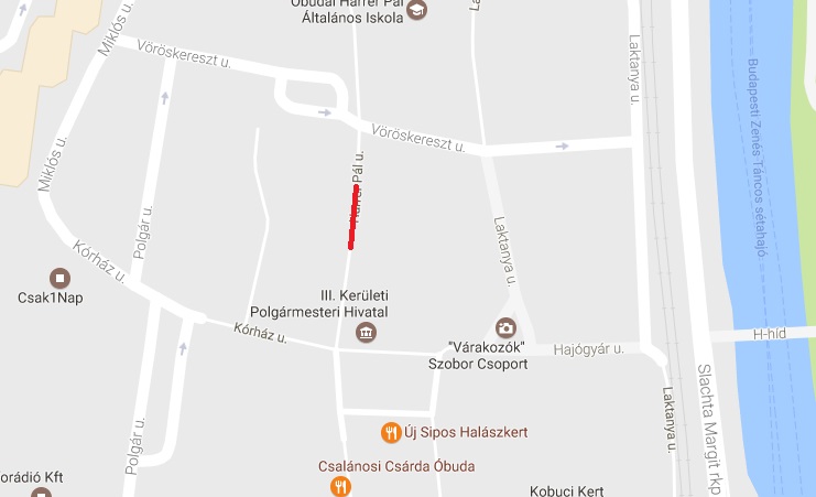 Harrer Pál utca 4. szám előtt 20 méter hosszan,
