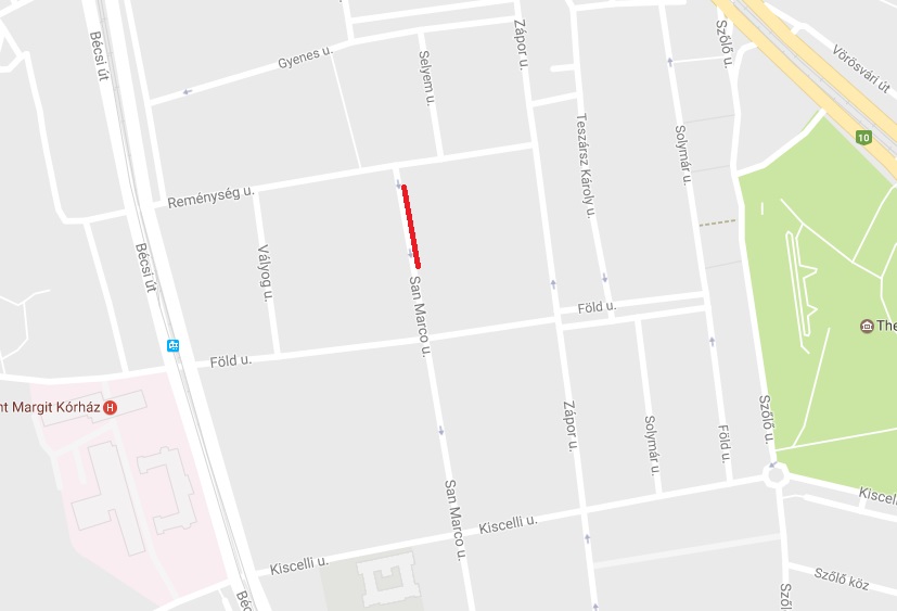 San Marco utca 81. szám előtt 50 méter hosszan,