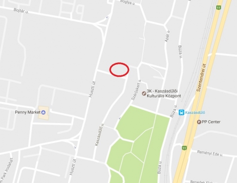 Kaszásdűlő utca 11. szám előtti parkoló területén.