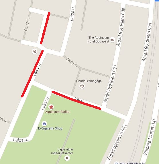 Lajos utca 156-158., valamint 162-168. szám előtti útszakaszok mindkét oldalán,