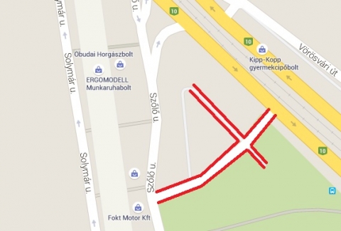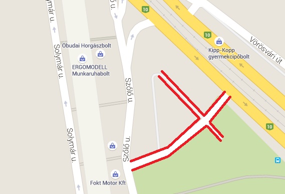 Szőlő utca 92-94. számmal szemben található parkoló területén belül a Vörösvári úttal párhuzamos parkolószakasz mindkét oldalán 100 méter hosszan,