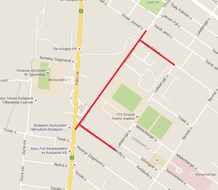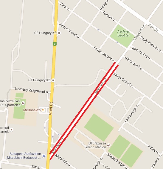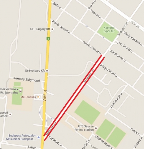 Irinyi Dániel utca a Megyeri út és a Labdarúgó utca között.