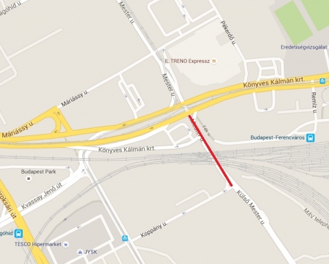 Külső Mester utca a Koppány utca és a Könyves Kálmán körút között.