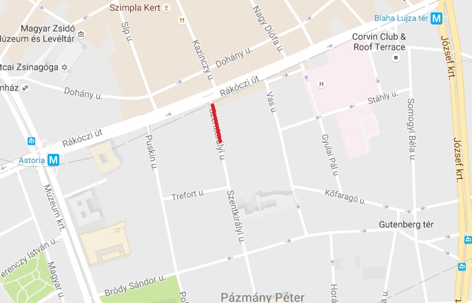 Szentkirályi utca páratlan oldalán a Rákóczi úttól 50 méter hosszan,