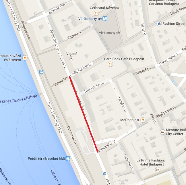Apáczai Csere János utca páros oldalán a Deák Ferenc utca és a Régiposta utca között,