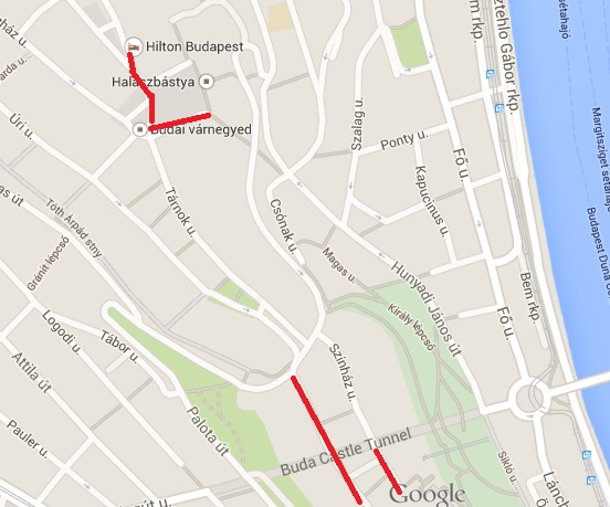 Szentháromság téren a Mátyás templom és a Hilton közötti szervizút mindkét oldalán.