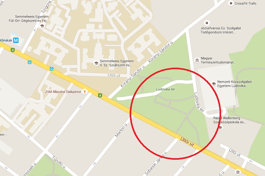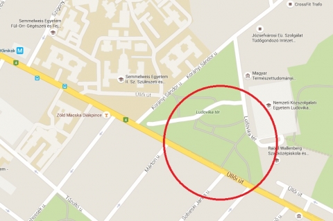 Üllői út 78/a. előtti magyar katonaorvosok emlékműve előtti szervizút mindkét oldalán a Ludovika tér és az Üllői út között.