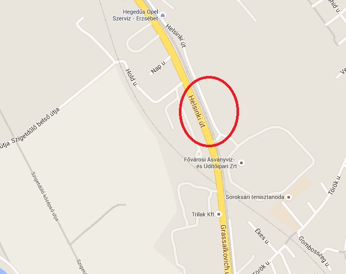 Helsinki út 105. szám előtti szervizút.