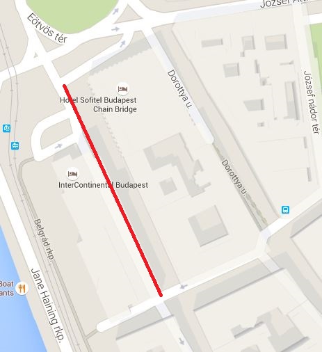 Apáczai Csere János utca páros oldalán a Szende Pál utca és az Eötvös tér között,