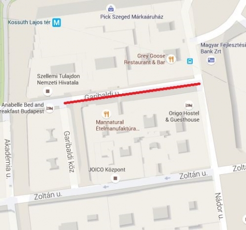 Garibaldi utca páratlan oldalán 50 méter hosszon,