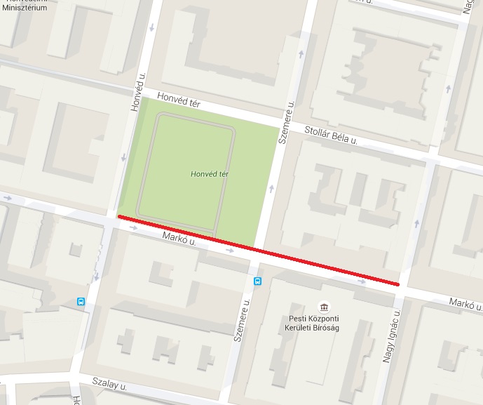 Markó utca páros oldalán a Nagy Ignác utca és a Honvéd utca között.