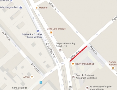 Dohány utca páratlan oldalán az Erzsébet körút és az Osvát utca között.