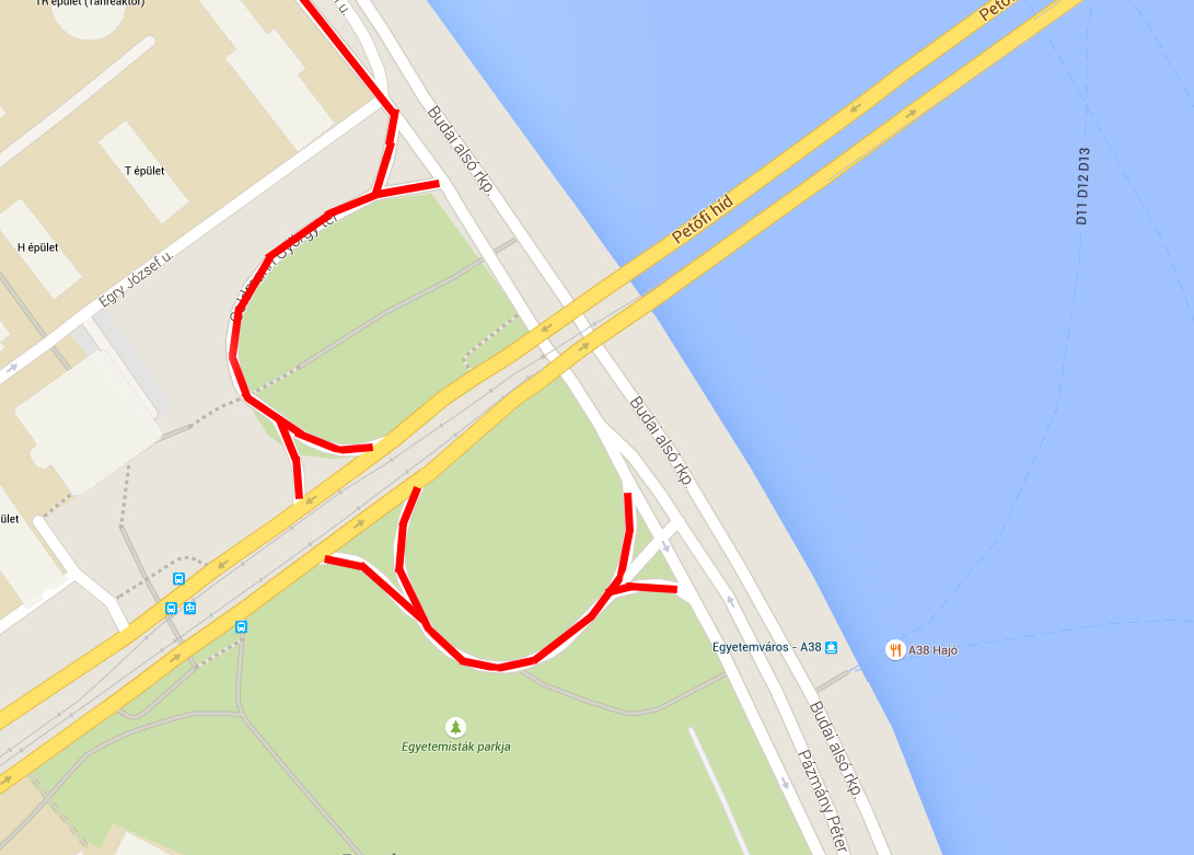 Petőfi híd le- és felhajtó a Petőfi híd és a Pázmány Péter sétány között,