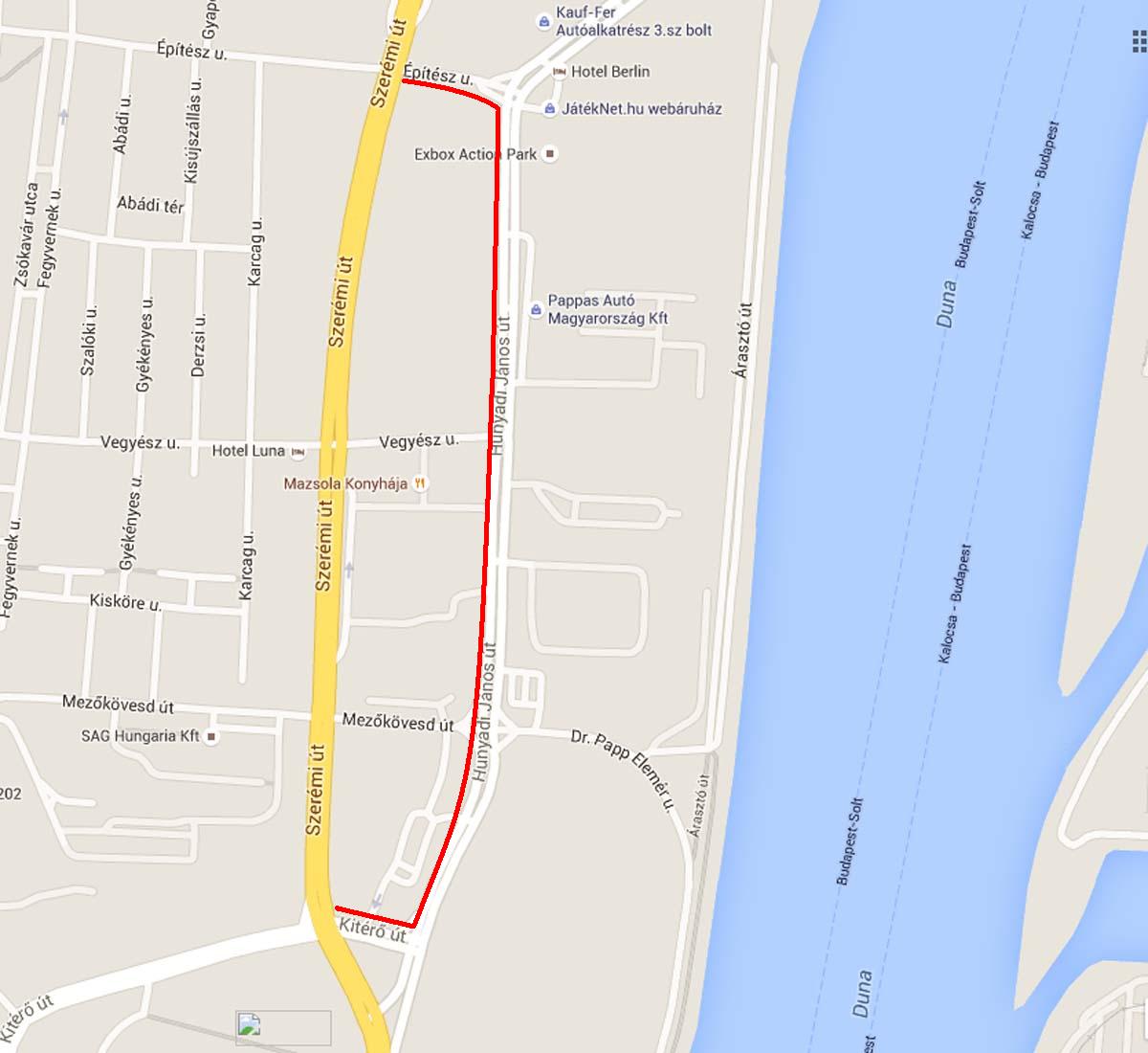 Hunyadi János út az Építész utca és a Kondorosi út utca között,