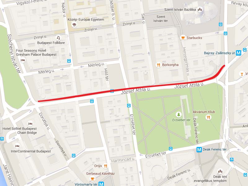 Széchenyi István tér a József Attila utca és a Széchenyi Lánchíd között,