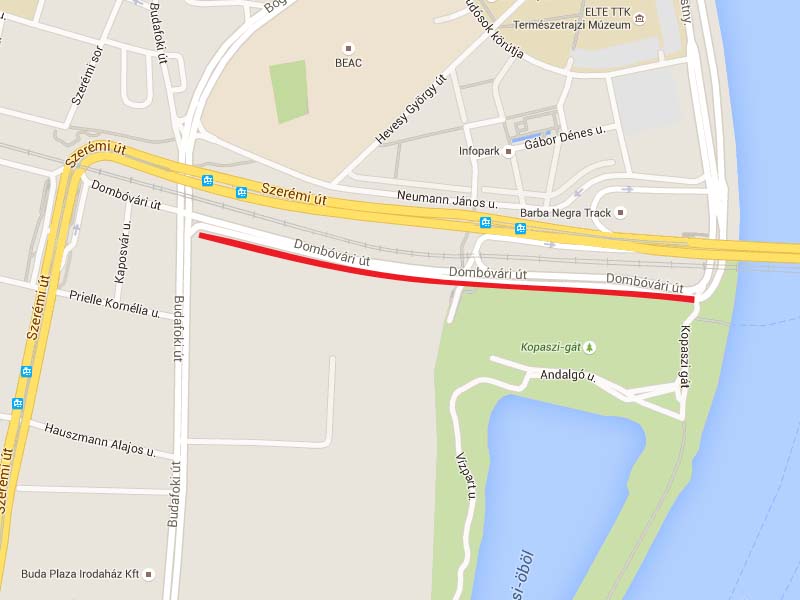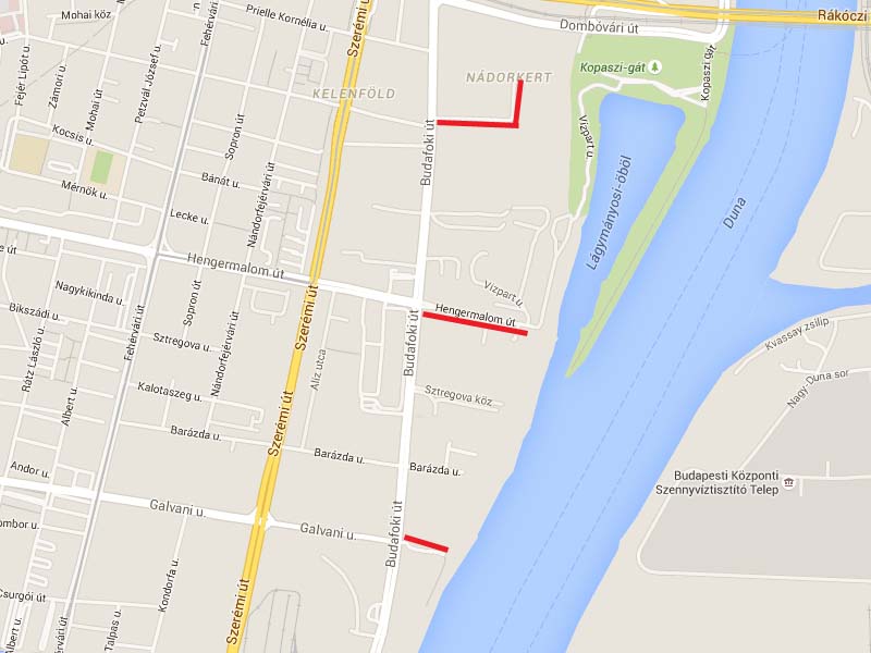 Dombóvári út a Budafoki út és a Kopaszi gát között.