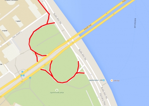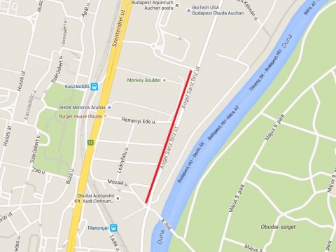 Budai alsó rakpart a Műegyetem rakparti le- és felhajtó és a Mozaik utca között,