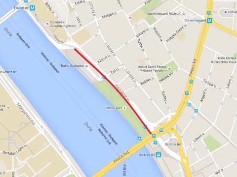 Budai alsó rakpart a Műegyetem rakparti le-és felhajtó és a Rákóczi híd között.