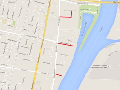 Hengermalom út mindkét oldalán Budafoki út és a Vízpart utca között,