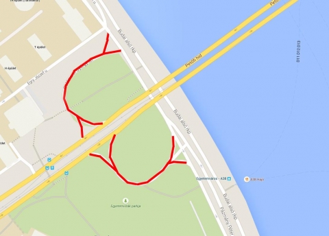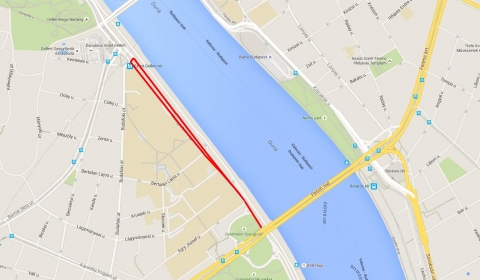 Budai alsó rakpart mindkét oldalán a Rákóczi híd és a Műegyetem rakparti le- és felhajtó
