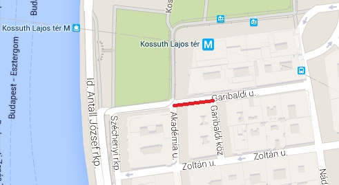 Garibaldi utca páratlan oldalán, az Akadémia és a Garibaldi köz között.